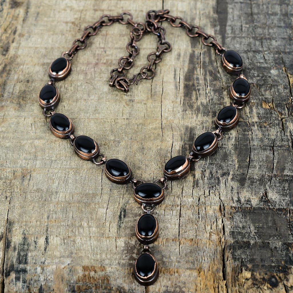 Collier en onyx noir collier en cuivre électroformé collier à chaîne réglable bijoux en cuivre élégants collier de pierres précieuses fait main cadeaux de mariage