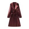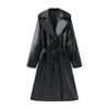 Automne/Hiver 2024 Manteau Trench Mi-Long en Cuir pour Femme avec Revers et Ceinture