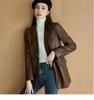 Rehaussez votre garde-robe avec cette veste en cuir chic pour femme grande taille, confectionnée en cuir lavé et polyester pour un mélange élégant de durabilité et de confort.. Cette pièce polyvalente présente des manches longues et un col tailleur, offrant une touche rétro sophistiquée à n'importe quel ensemble décontracté.. Décorée de poches pratiques, cette veste combine fonctionnalité et mode intemporelle pour un look vraiment unique et sans effort.