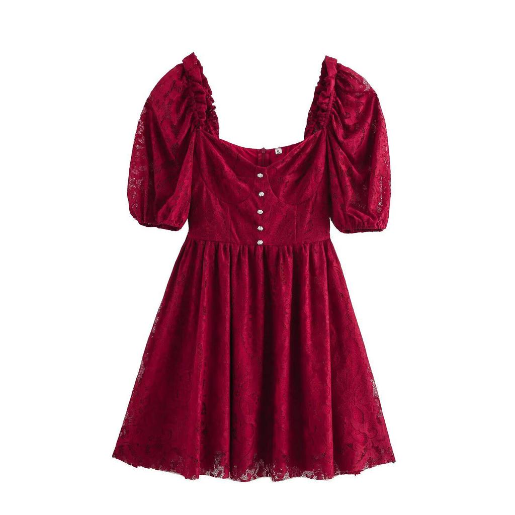 Embrace the elegance and charm of this European and American style lace puff sleeve dress, crafted from high-quality polyester for a comfortable fit. This stunning piece features intricate lace detailing and fashionable puff sleeves, making it a perfect choice for any spring occasion. With its blend of modern sophistication and timeless design, this dress effortlessly elevates your wardrobe with grace and style.