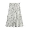 2025 Spring Women's European & American Ink Wash Satin Midi Skirt