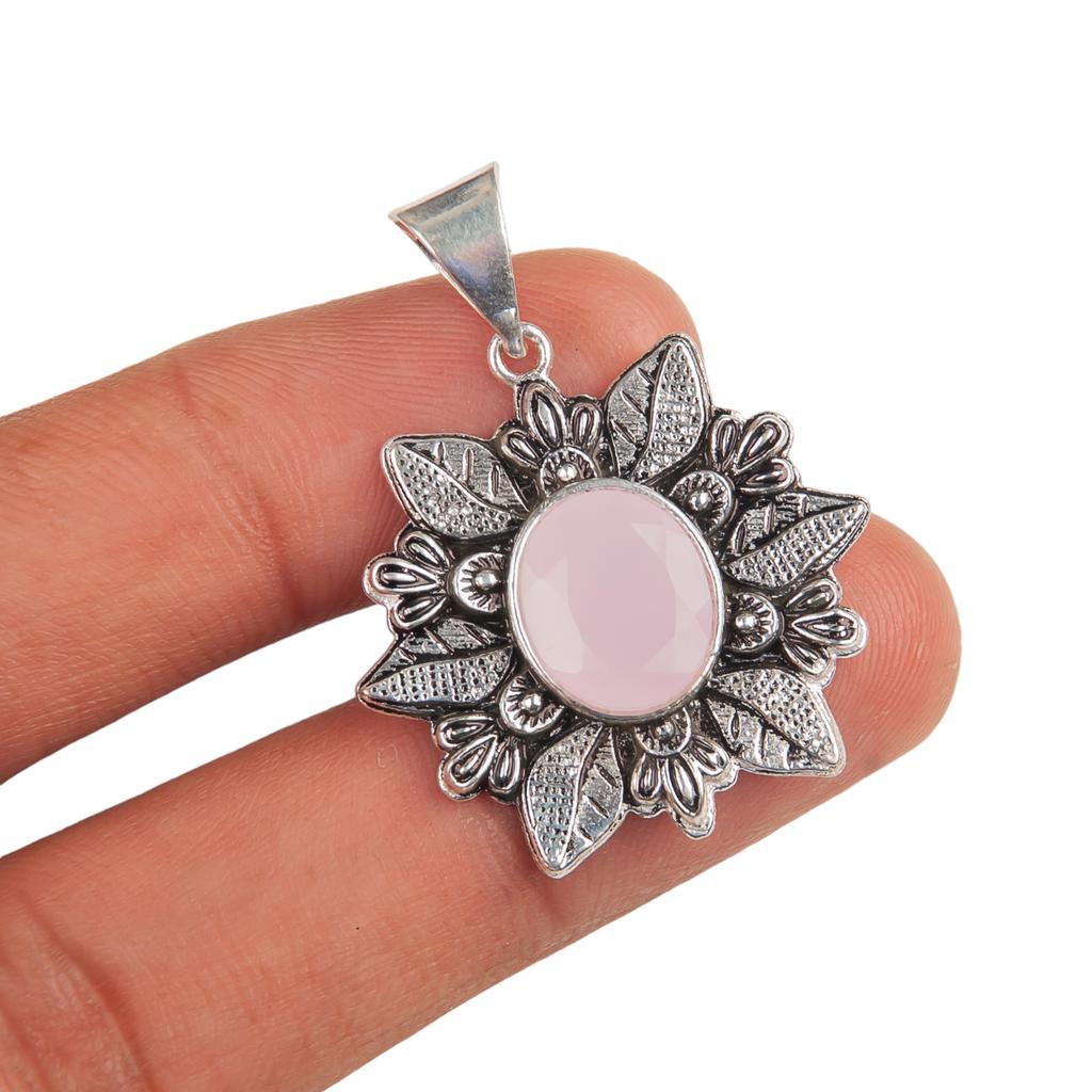 Pierre Gemme Rare Calcédoine Rose Bijoux Argent Sterling 925 Pendentif Fait Main 1.59" CP-14-7