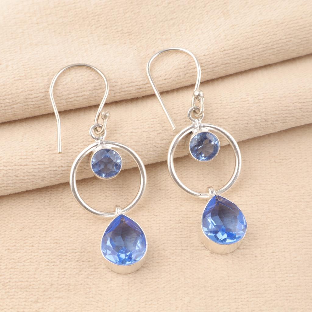 Pierre Précieuse Tanzanite Naturelle Bijoux en Argent Sterling 925 Boucles d'Oreilles Artisanales 2.0" EE-140-15