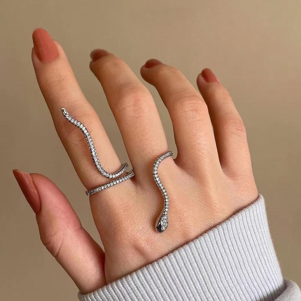 European & American Retro Snake-Shaped Adjustable Ring: Trendy Women's Wrap-Around Index Finger Jewelry.