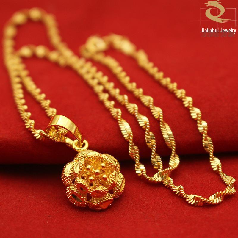 Collier Pendentif en Laiton Gravé Plaqué Or - Chaîne Clavicule Ondulation d'Eau, Ne Décolore Pas, Bijou de Luxe Léger pour Femmes