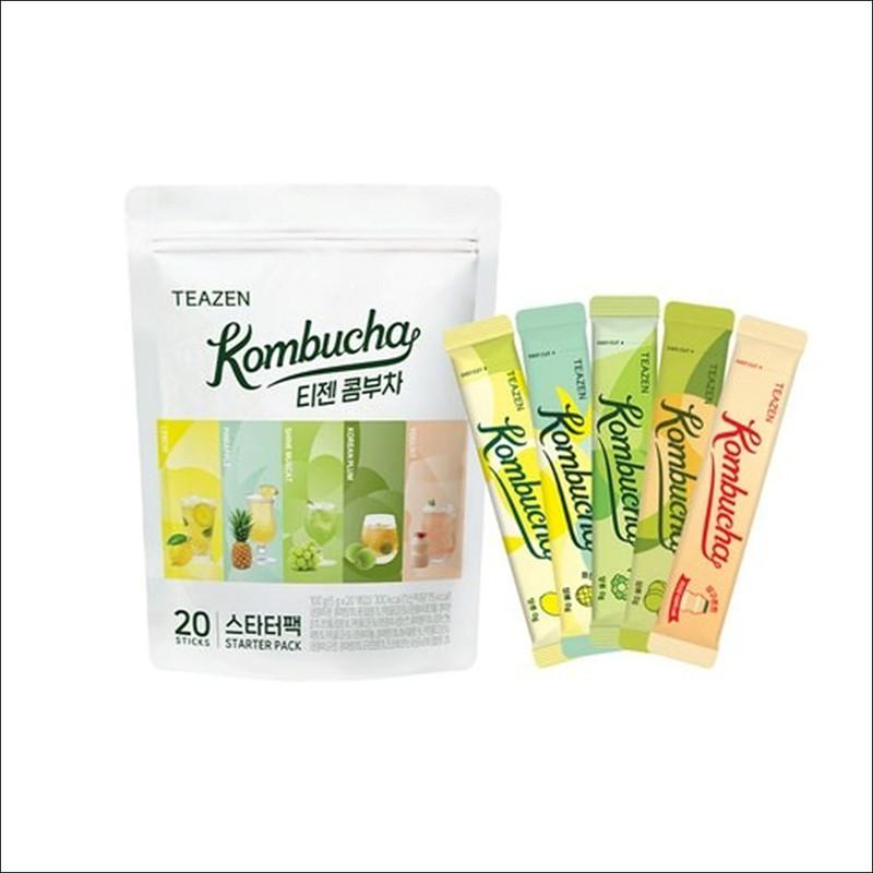 TEAZEN Kombucha Starter Pack Tea 20 Sticks (5 Flavors x 4 Sticks) / Low Calorie, Zero Sugar, Prebiotics