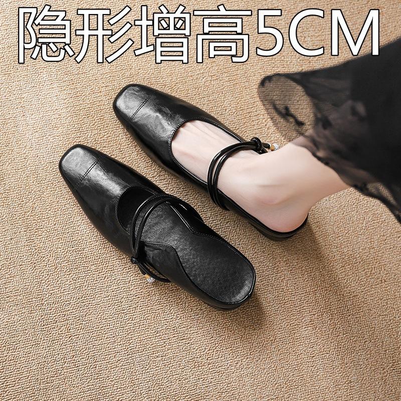 inner heightening bag head half slippers women's spring and summer sandals soft leather sandals outer thick heels Mary Jane shoes