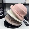 Chapeau cloche d'automne et d'hiver en laine, fil cercle, bord relevé devant, pour femme, doux, petit, frais, avec nœud, chaud, décontracté