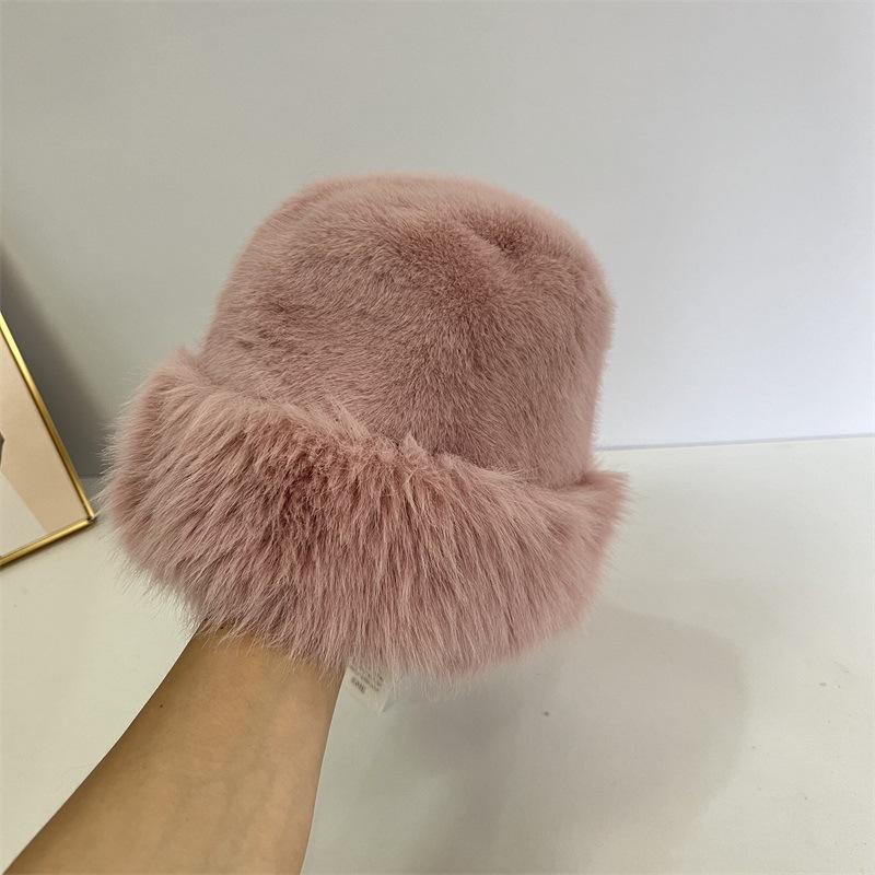 Chapeau d'hiver en peluche duveteuse femmes hiver épaissi chaud coupe-vent fourrure intégrée protection des oreilles chapeau seau tendance