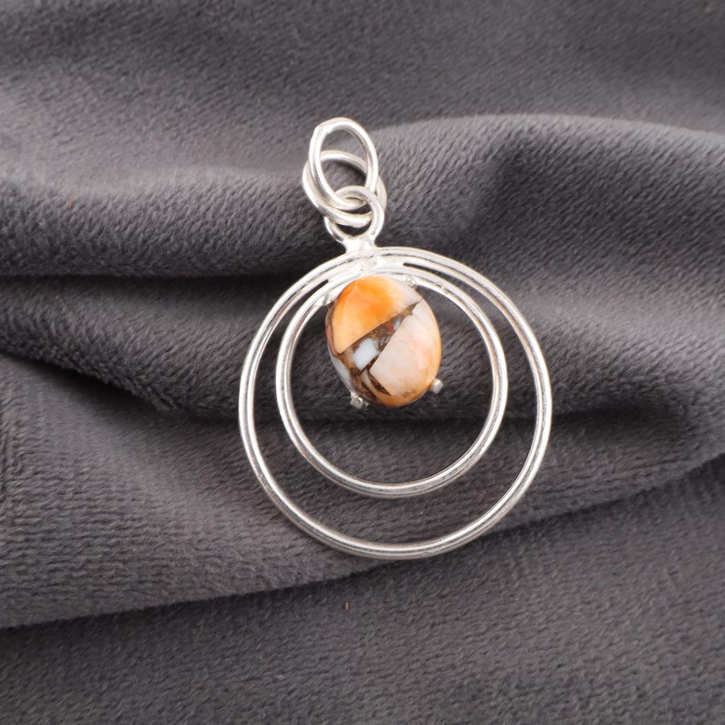 Pendentif en Argent Sterling Massif 925 Turquoise Cuivre Orange, Bijou Pendentif Pierre Précieuse Fait Main, Pendentif de Créateur Pour Elle