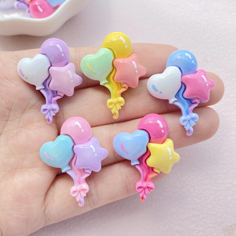Nouveau Mignon Résine Dessin Animé Forme de Cœur, Série Ballons Forme Étoile Dos Plat Scrapbooking DIY Bijoux Artisanat Décoration