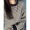 Nouveau Sweat-shirt Rayé Polyvalent Automne et Hiver pour Femmes Style Coréen Ample Décontracté Réducteur d'Âge Col Rond Pull Veste Sweat-shirt