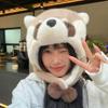 Mignon raton laveur de dessin animé en peluche femelle hiver extérieur ski chaud protection froide des oreilles bonnet à enfiler étudiant