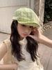 Plaid beret women's spring summer thin versatile face small octagonal hat big head circumference painter hat