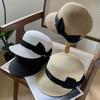 Chapeau de paille à dôme avec petit nœud anti-âge pour femme, chapeau de paille tissé d'été, protection solaire, visière, chapeau d'équitation