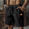 Cotton Linen Shorts with Drawstring Elastic Waistband Straight Legs Solid Color Breathable Daily Beach Five Point Casual Shorts