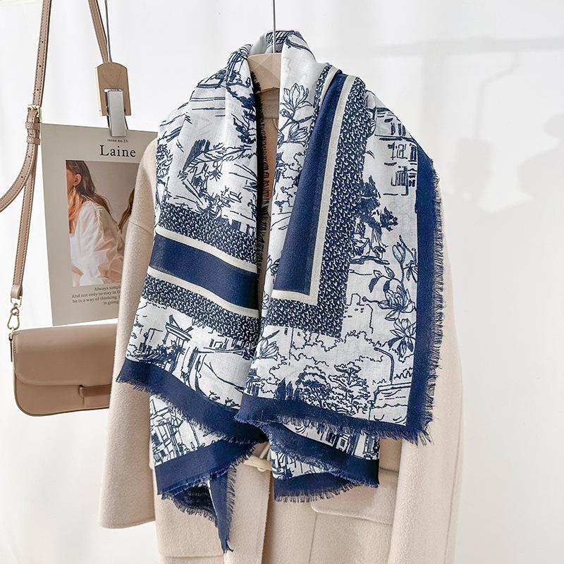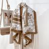 Niche retro plant flower printing square scarf high-end sense dismantling beard large square scarf autumn and winter fashion outer shawl