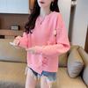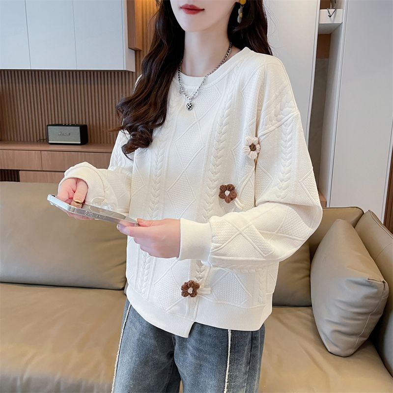 Women Clothing Korean Fashion 3D Flower Asymmetrical Sweet Chic Sweatshirt Casual Streetwear O Neck Long Sleeve Loose Solid Tops