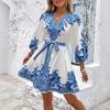 Mesdames, Robe Imprimée, Col en V, Manches Courtes, Taille Lacée, Robe