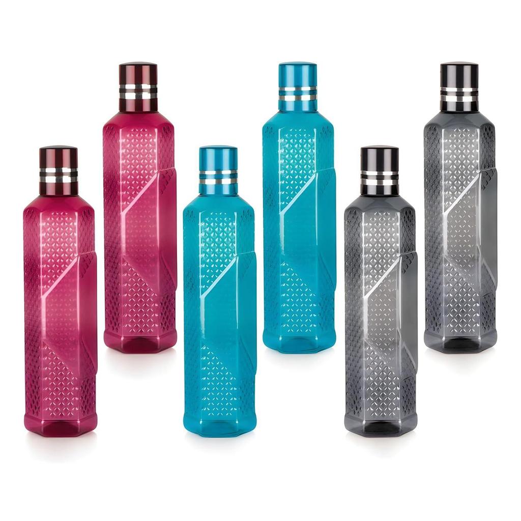 Bouteille d'eau en plastique incassable I Étanche I Sans BPA de qualité alimentaire Bouteille d'eau pour réfrigérateur I Idéale pour la salle de sport, 1 litre chacune, Lot de 6, Assorti