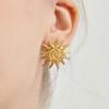 1 Paire Boucles d'Oreilles Soleil Filetées en Acier Inoxydable, Boucles d'Oreilles Créoles Tournesol Vintage Plaqué Or 18K Étanche Anti Décoloration Pour Femmes