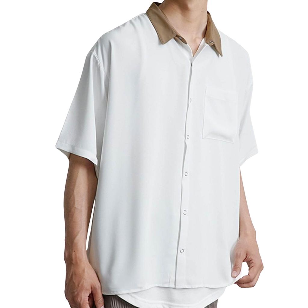 Clérical snap grand été automne décontracté blanc Chemise à manches courtes pour homme, chemise, bouton, surdimensionnée, ample, soyeuse, silhouette, mode homme, vêtements,