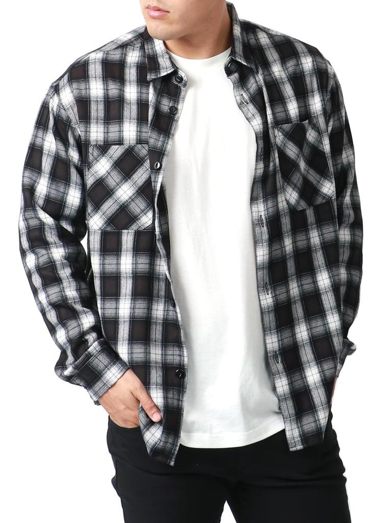 Chemise à carreaux décontractée longue américaine L [MRU], Chemise pour homme, M-6L, Manche, Simple, Décontractée, Blanche,