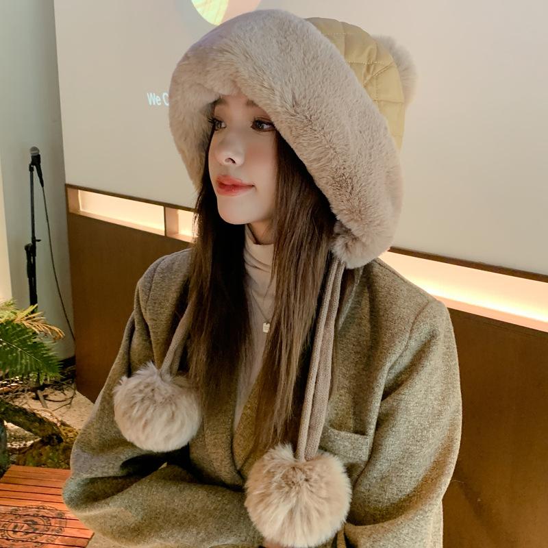 Autumn and winter women's fashion versatile cute hairball ear protection hat cold-proof thickened fluff cap pullover hat tide