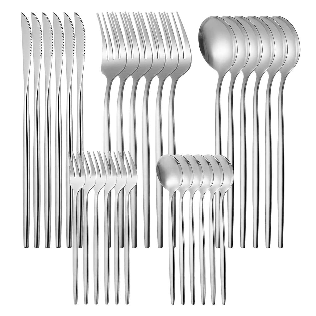 QuiExact Ensemble de 30 pièces de couverts Couteau Cuillère Fourchette Ustensiles en Acier Inoxydable Ensemble de Vaisselle pour Cuisine Maison Mariage (argent)