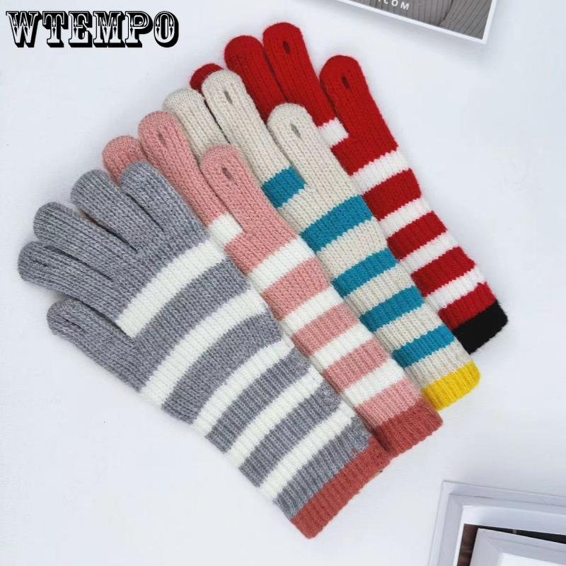 Gants Tricotés pour Femmes Hiver Femmes Pile Long Rayé Écran Tactile Extérieur Gants de Cyclisme