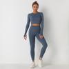 Nouvel Ensemble de Yoga Tricoté Couleur Unie Sans Coutures Manches Longues Pantalon Long Ensemble Deux Pièces Pour Femmes Course Sport Fitness