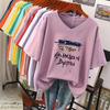 T-shirt à manches courtes, Coupe ample, Haut amincissant à col en V imprimé pour femmes