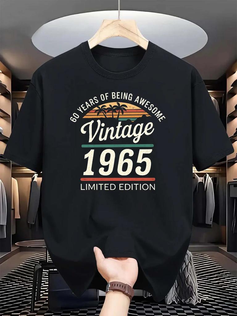 60-year-old large pattern T-shirt Men's summer cotton fashionable casual loose Limited Edition 1965 retro T-shirt
