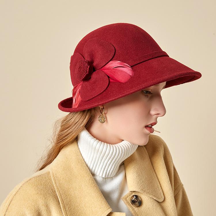 Retro Top Hat Autumn And Winter Woolen Hat Women'S Fashion Flower Styling Hat Back Curling Felt Hat
