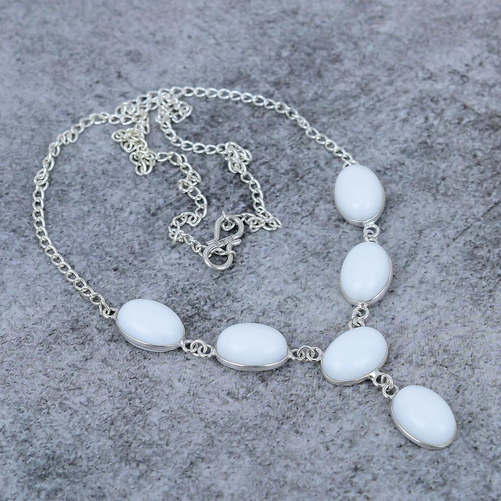 White Coral Gemstone Handmade 925 Sterling Silver Jewelry Necklace 18" M-406