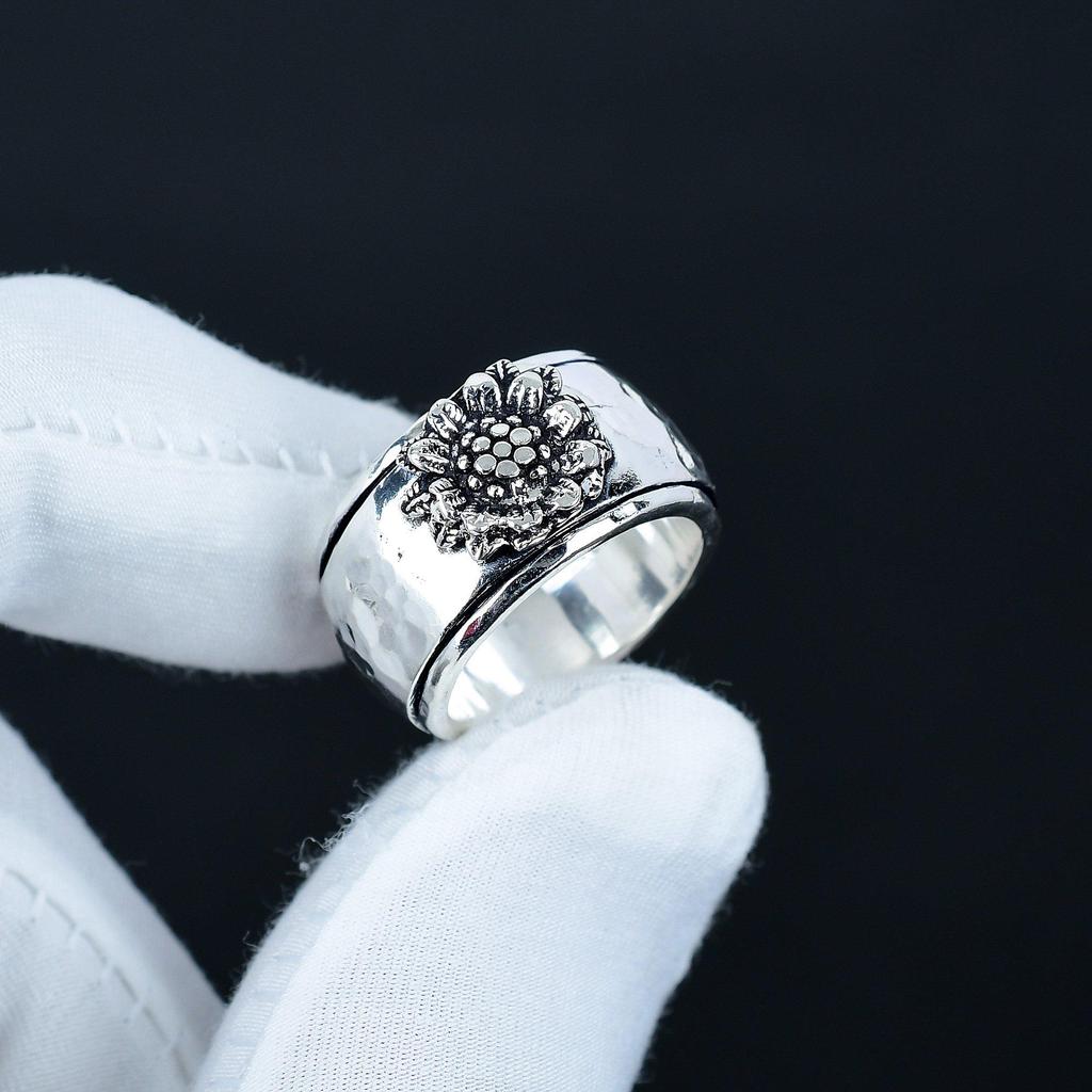 Bague Bande Design Floral, Bague Spinner Unisexe, Bague Spinner de Méditation, Bijou Fait Main en Argent Sterling 925 Cadeau Bague de Promesse pour Petite Amie