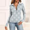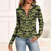 Haut Décontracté Imprimé à Manches Longues et Col en V Boutonné pour Femme