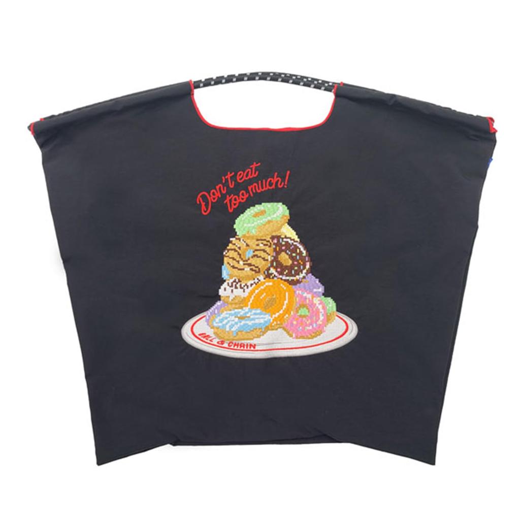 Ball Chain Authentic Large Pixel Donuts Eco Bag Shopping Bag 301160 [Ball & Chain] & (L, BLACK)