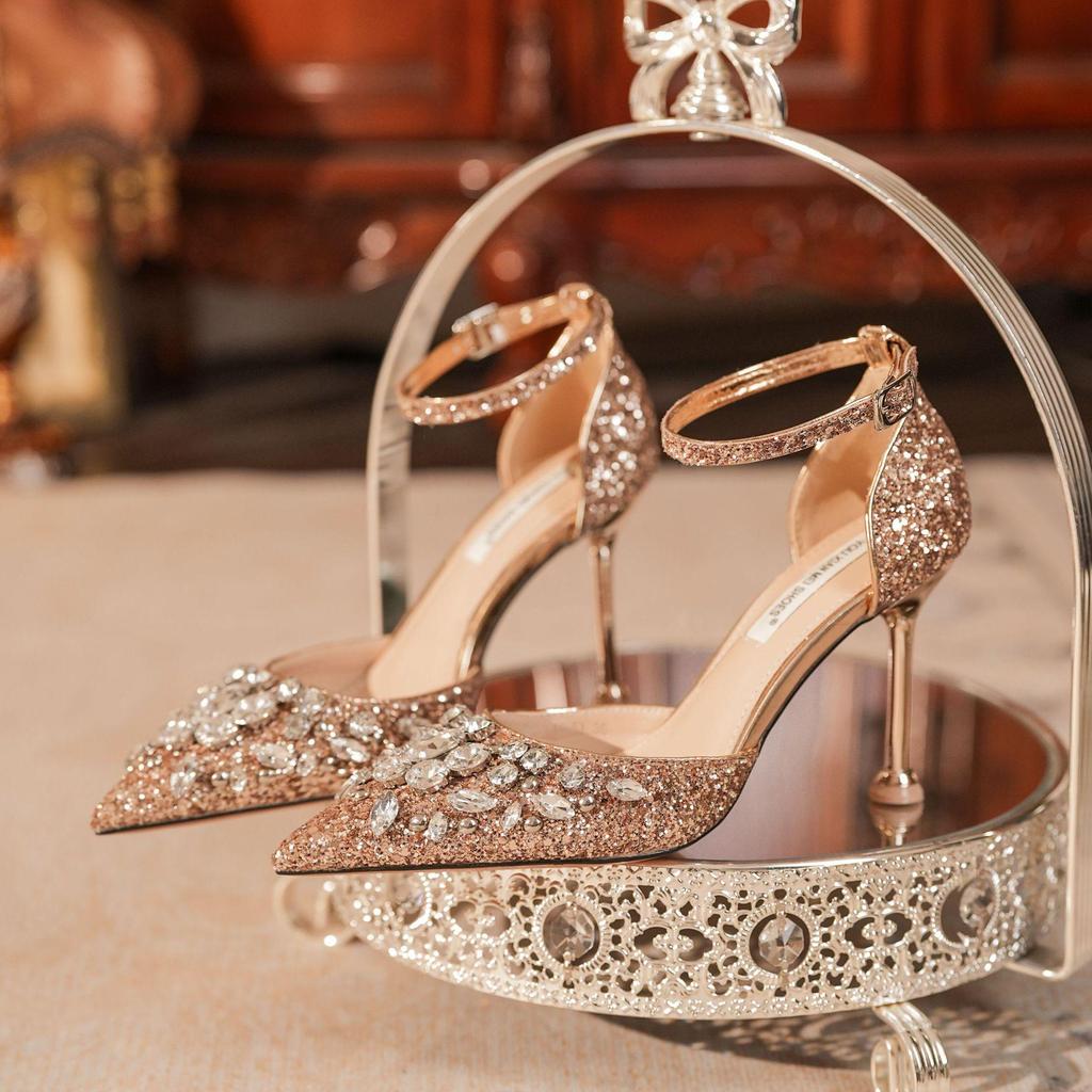 Entrez dans la sophistication avec ces talons hauts scintillants, conçus pour captiver lors de mariages et de banquets.. La chaussure présente un design élégant à une seule bride orné de strass éblouissants, ajoutant une touche de glamour à n'importe quelle tenue.. Parfaits pour celles qui recherchent une touche sexy, ces talons sont conçus pour compléter le style élégant d'une femme.. Que vous dansiez toute la nuit ou que vous fassiez une entrée remarquée, ces talons offrent à la fois confort et allure, ce qui en fait un ajout indispensable à votre collection de chaussures.