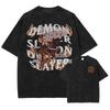 T-shirt Imprimé Anime Demon Slayer Femme Manga Vintage Délavé Harajuku Coton Tops