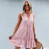 Robe Sexy à Col V pour Femme Robe d'Été Sans Manches de Couleur Unie
