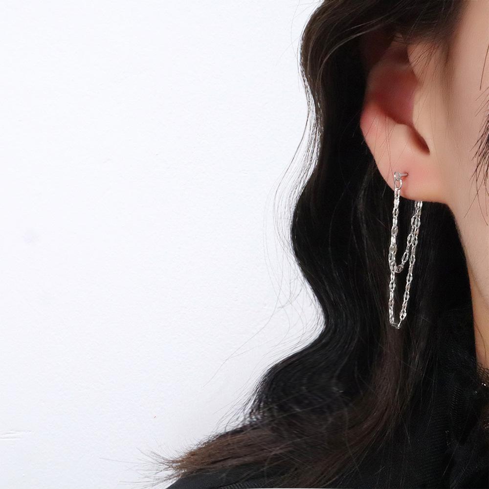 Double-Layer Tassel Lip Chain Earrings: Slimming Design, Long Flash Chains, Niche Drop Ear Jewelry.