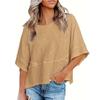 Women's Patchwork Solid Color Round Neck Three-quarter Sleeve Pagoda Sleeve Loose T-shirt