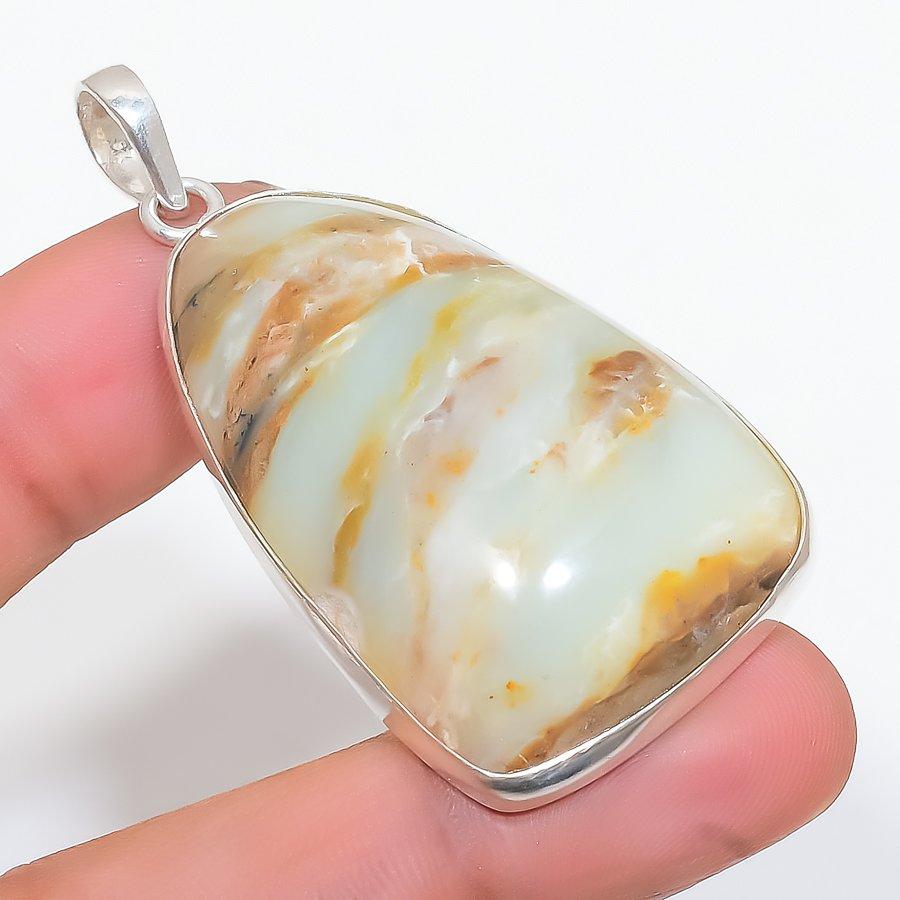 Chrysoprase Gemstone Handmade 925 Steling Silver Jewelry Pendant 2.29" SU-9617
