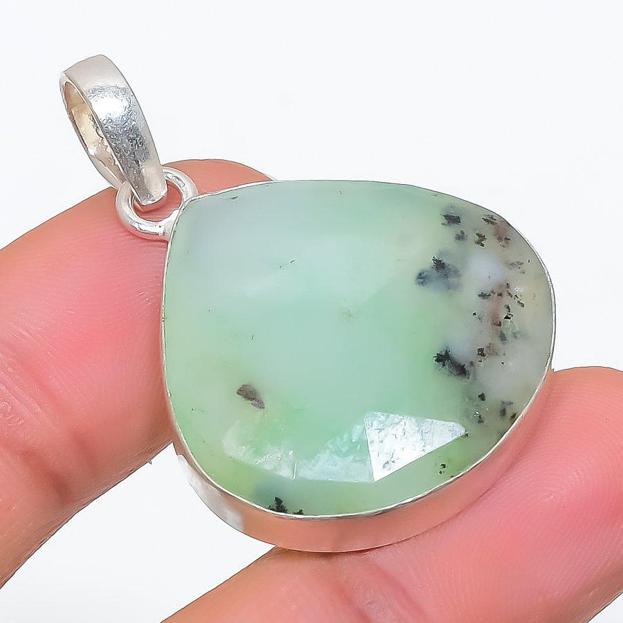 Chrysoprase Gemstone Handmade 925 Steling Silver Jewelry Pendant 1.50" SU-9630