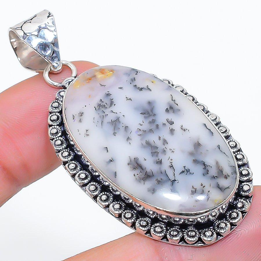 Pierre Précieuse Opale Dendritique Fait Main Bijou en Argent Sterling 925 Pendentif 2,25" SU-10720