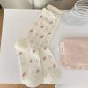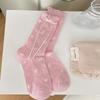 Chaussettes d'été fines pour femmes, vintage, avec nœud en ruban, petites fleurs, douces, en dentelle, en maille, tube, chaussettes montantes
