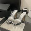 Talons hauts à une pédale pour femmes, nouveaux escarpins à bout carré imperméables à plateforme pour femmes avec boucle à strass couvrant l'orteil, sandales à talon épais