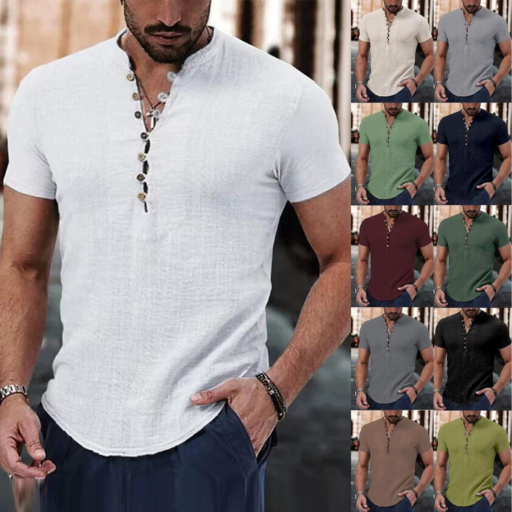 Homme Manches Courtes Été Coton Chanvre Coton Fin Décontracté Couleur Unie Lâche