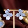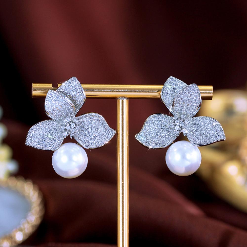Zircons Noble White Gold Color Cubic Zirconia Elegant Big Flower Dangle Pearl Earrings for Women Wedding Party Jewelry E1150